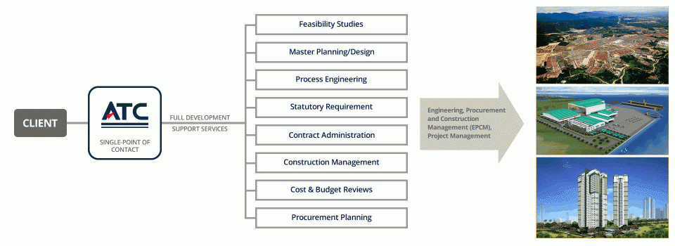 ATC provides a single channel in handling all downstream activities required for successful project completion. Our regional exposure and close working relationship with our counterparts in these countries enable us to assure overseas investors of the acquisition of land, obtaining of building permits, compliance with local building and environmental regulations. Most importantly, our assurance of quality that our clients are accustomed to.
